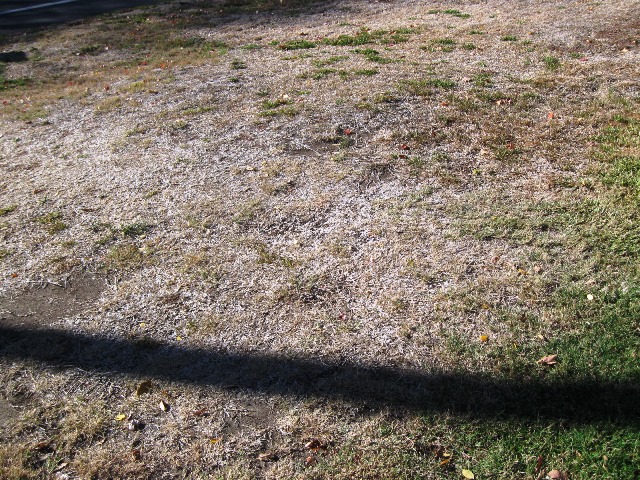 In the last couple of years, I've overseeded with drought resistant grass seed. That worked fairly well and gave me a lush, green lawn for about 4 months but wilted under our 100+ degree summer heat fairly rapidly with our states water rationing scheme.