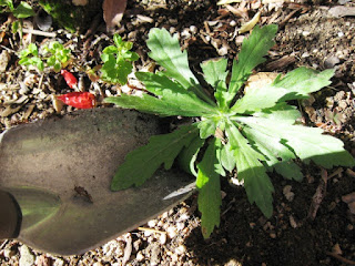 At this size, the root is very deep and it is impossible to hand-pull out of the ground, so I dig as deep as I can with my trowel.